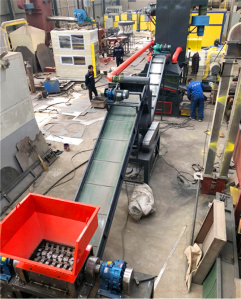 3. Coarse crushing uses the biaxial shredder with low rotating speed and large torque, and the cutter and shaft are specially treated with alloy materials.